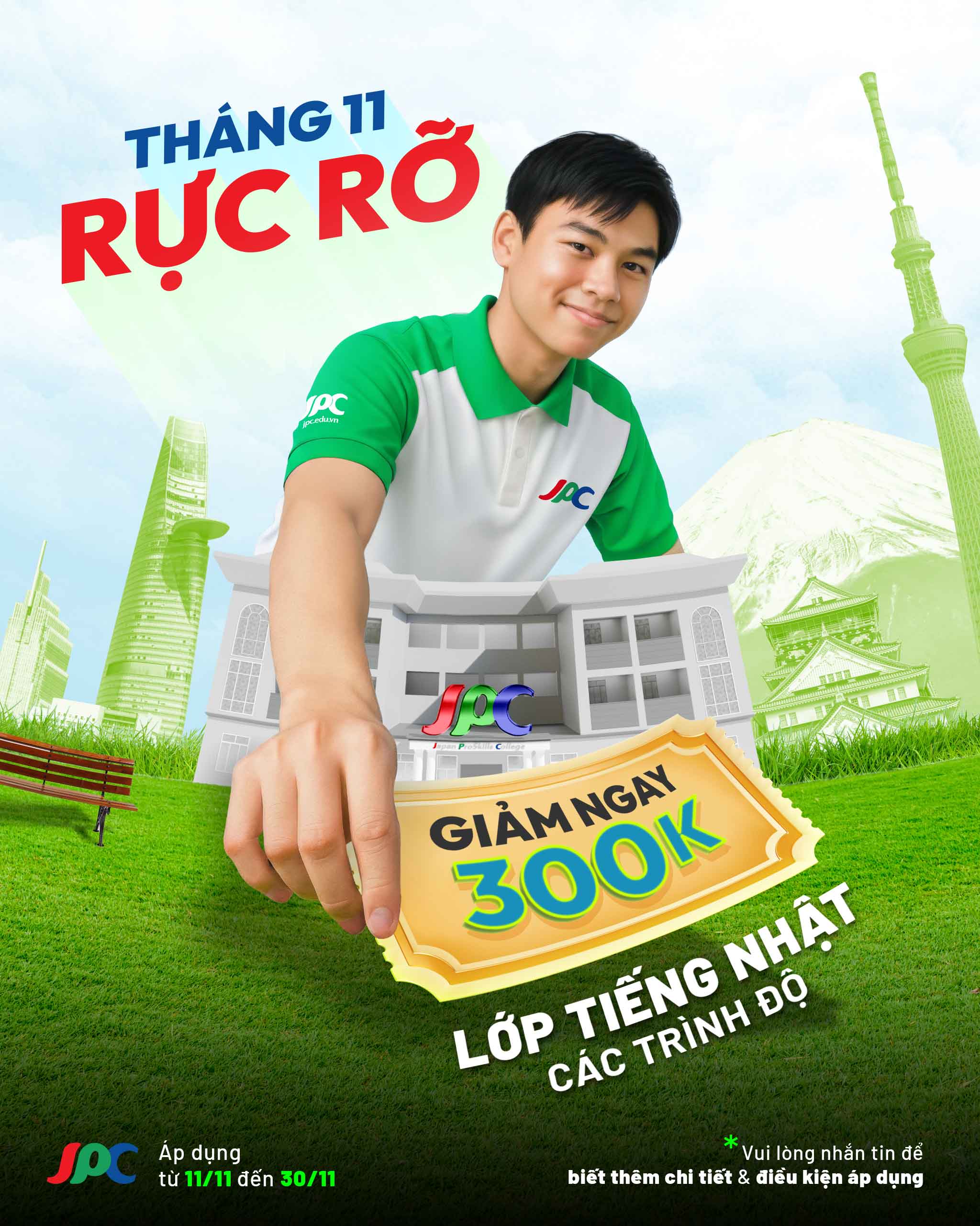 Tháng 11 đến rồi – tháng của yêu thương và tri ân Thầy Cô! Và cách tuyệt vời nhất để nói “cảm ơn” Thầy Cô chính là học tập, trưởng thành và phát triển mỗi ngày. Nhân dịp đặc biệt này, Kaizen – JPC mang đến ưu đãi đặc biệt giảm ngay 300k học phí khi đăng ký khóa tiếng Nhật các trình độ trên toàn quốc từ 11/11 - 30/11/2025!